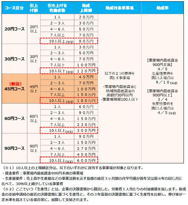 業界でも「低賃金」の中小零細企業(100名以下)が対象となります。