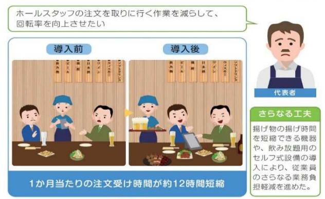 テーブルまで行き注文を取っていたが、「テーブルオーダーシステム」を導入したことで、お客さまに自分で注文を入力してもらえるようになり、オーダーと会計が正確になり、従業員の負担が減った。