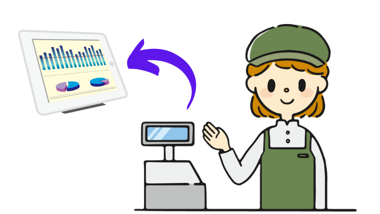 「POSレジ」とは・・・お客さまと金銭のやりとりをした時点での販売情報を管理するシステム(POSシステム)